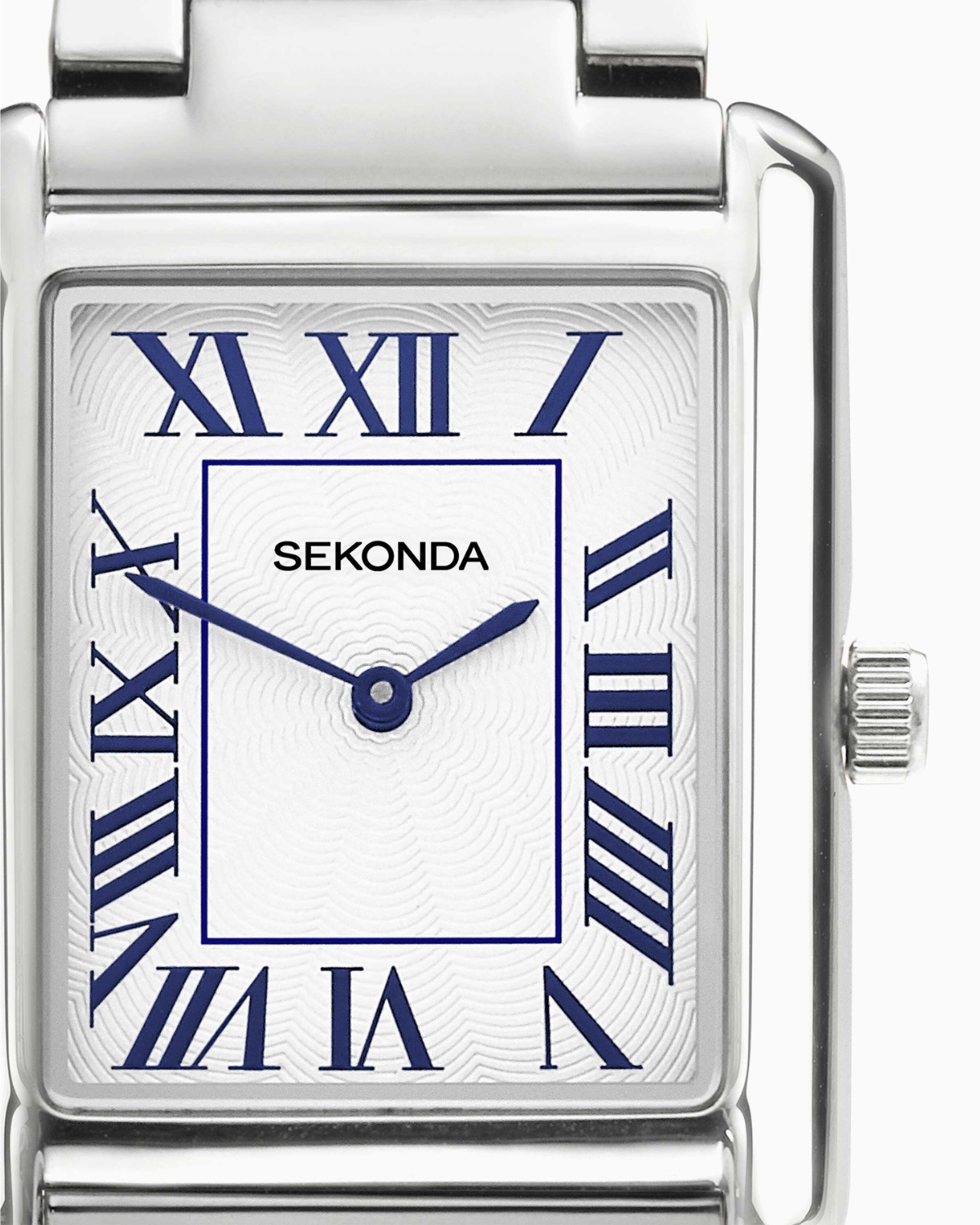 Blending vintage character with modern design, the Clement captures the enduring appeal of classic watches. Its bold rectangular case channels old-school charm, while the detailed guilloché dial, Roman numerals, and striking blue hands create a confident, refined aesthetic. Offered in silver or gold-plated finishes with your choice of bracelet or leather strap, the Clement delivers timeless style with a strong presence.