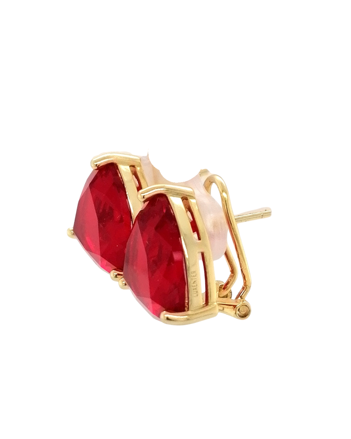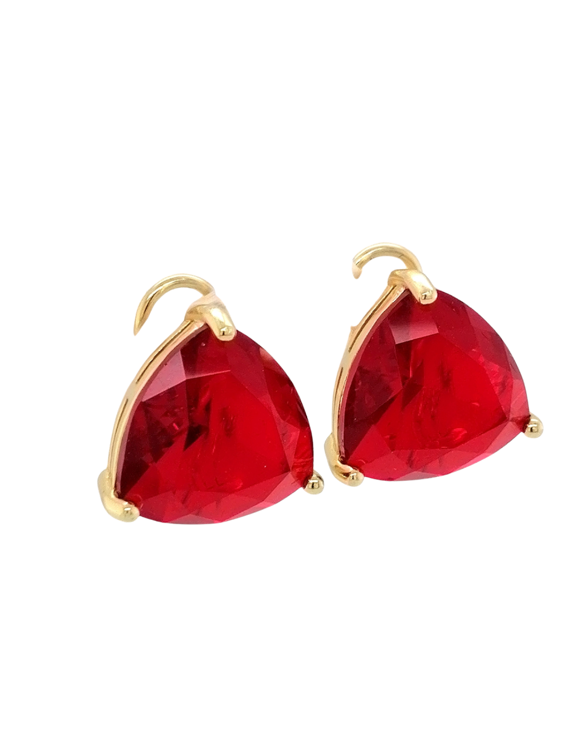 EXA74Y93900Elegant silver stud earrings featuring vibrant ruby red stones set in a distinctive triangle design.