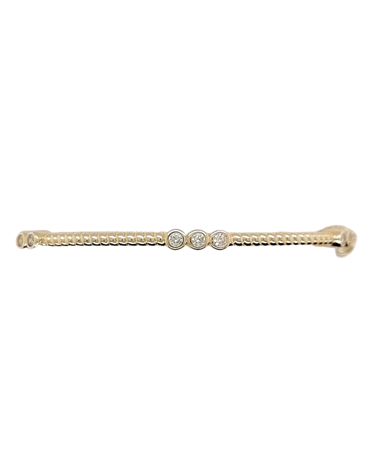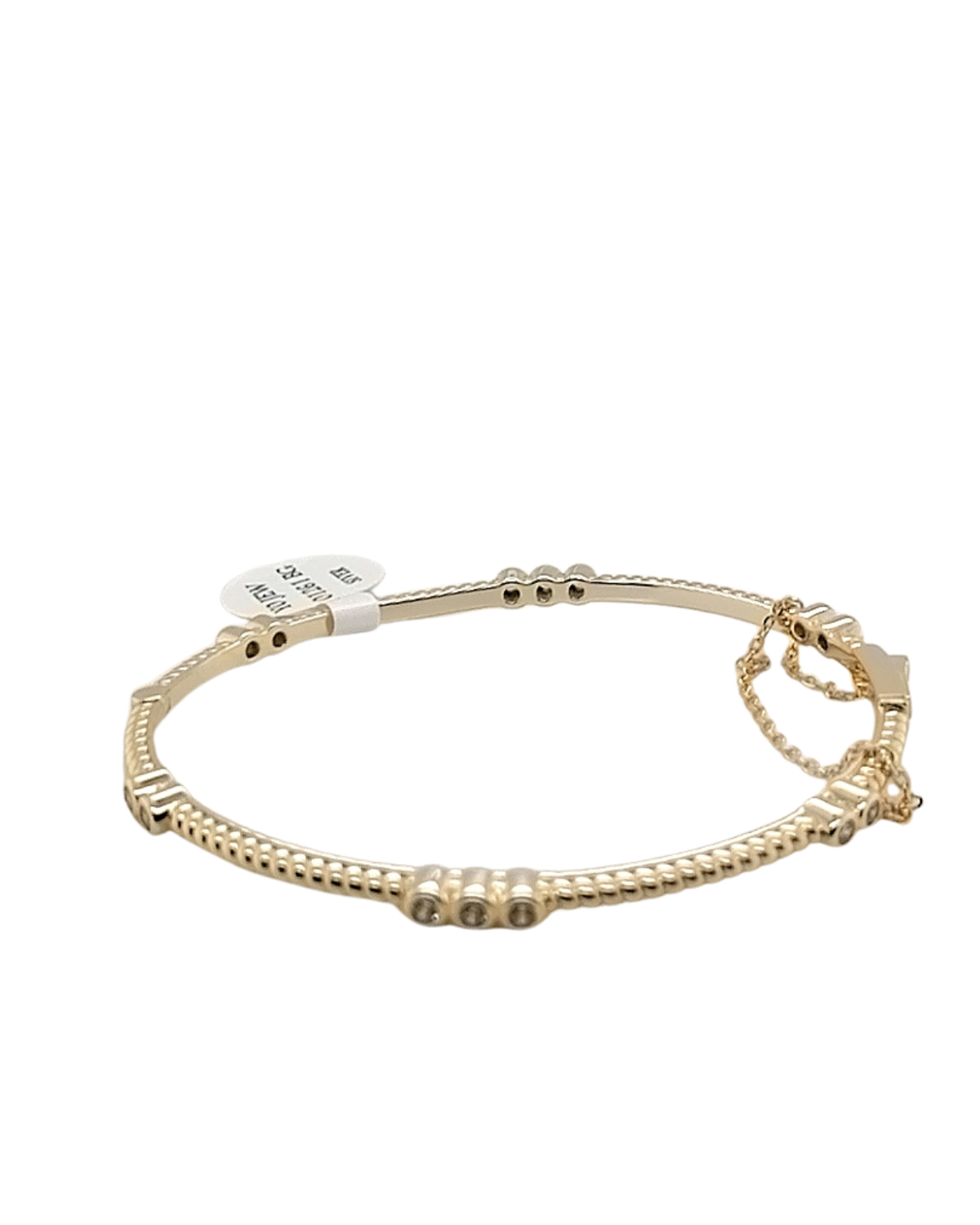 YO1261BGThis sterling silver bangle combines timeless elegance with contemporary design. The beaded finish provides subtle texture, while sets of three round cubic zirconia stones set in secure rub-over settings catch the light beautifully.
