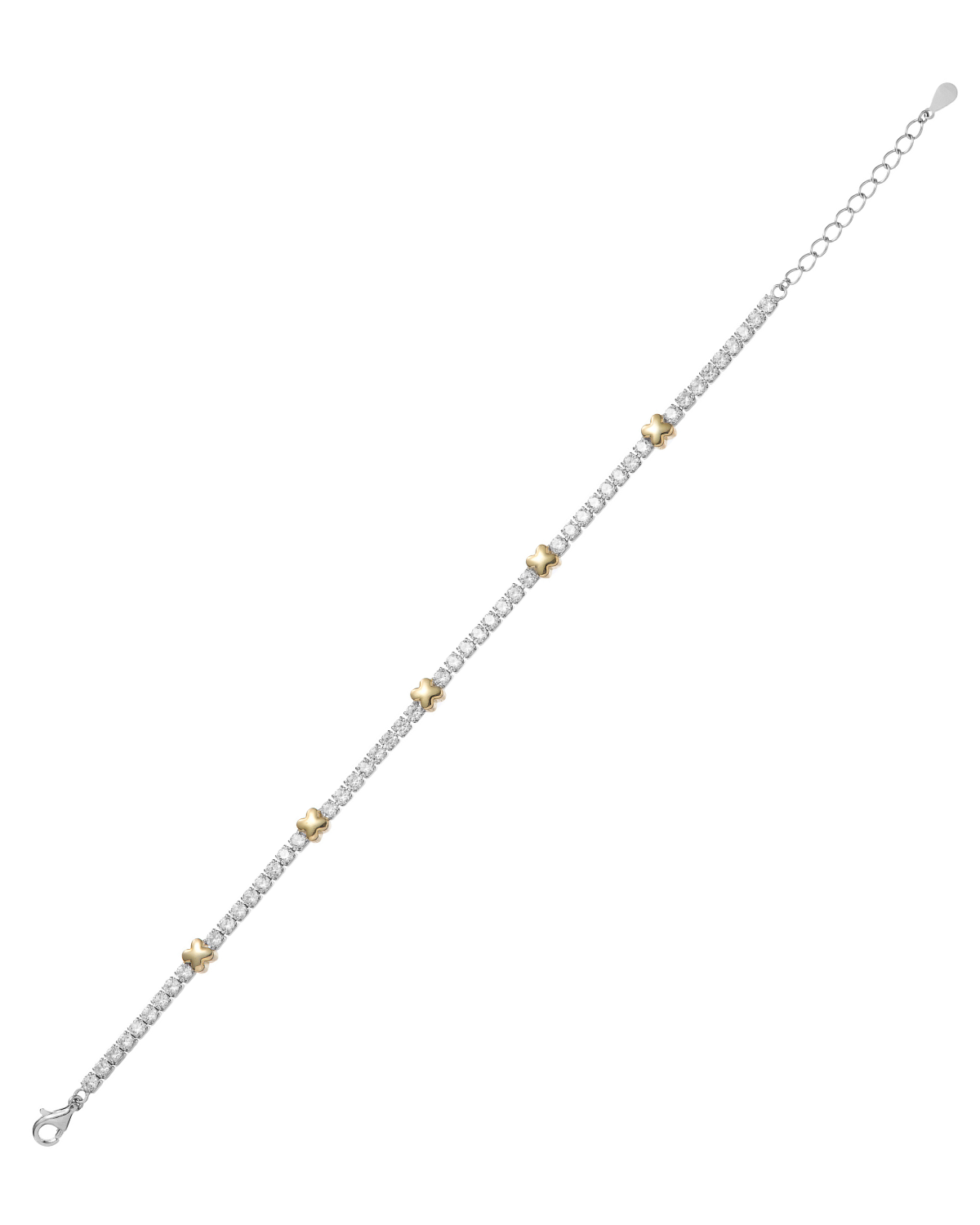 Elevate your jewellery collection with this sophisticated two-tone tennis bracelet, expertly crafted in sterling silver with striking gold-coloured X motifs interspersed throughout.