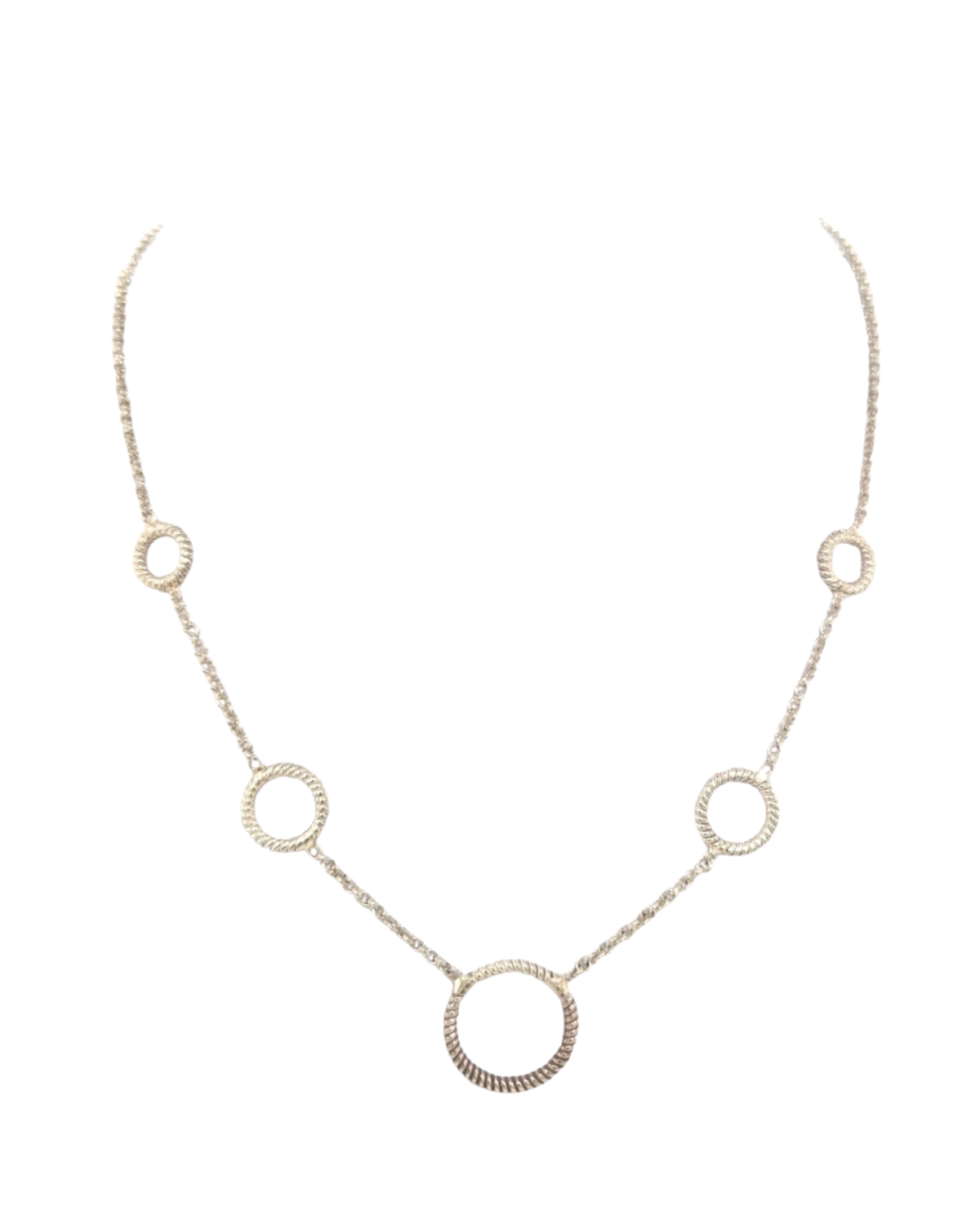 GL1237This sterling silver necklace showcases arrangement of circular elements.