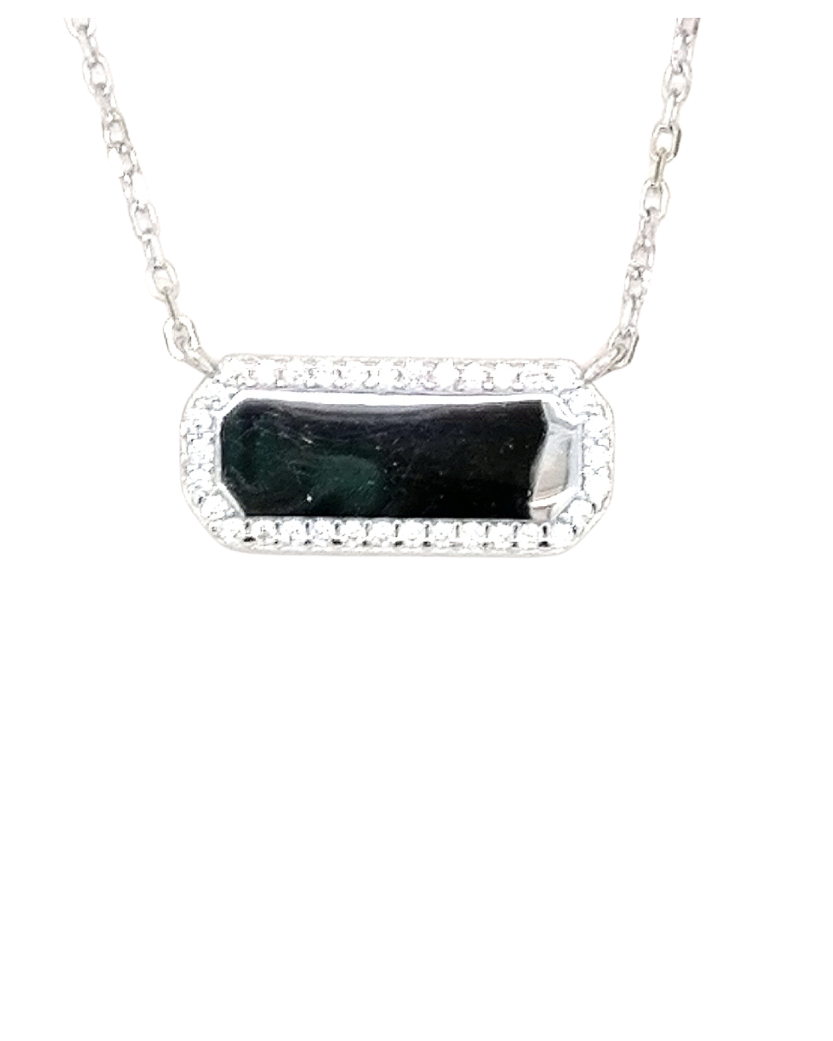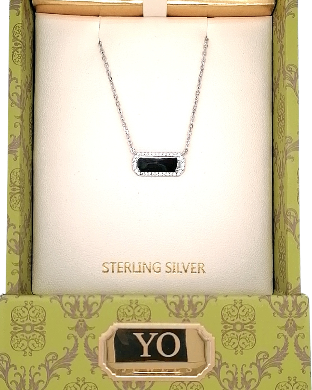 YO1195NSterling silver disc pendant featuring brilliant cubic zirconia stones arranged around the perimeter, suspended on an adjustable 16" to 18" chain.